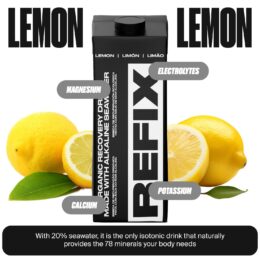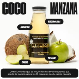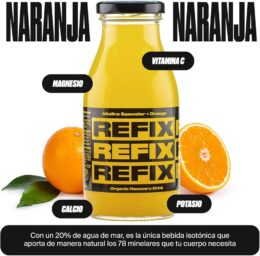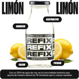 Al realizar ejercicio, sudamos lo que provoca la pérdida de sales minerales (electrolitos) como sodio, potasio o cloruro. REFIX contiene de forma natural 75 sales minerales, gracias a estar compuesto por un 20% de agua de mar. Al beber REFIX durante y después del entrenamiento, recuperas electrolitos así como líquidos. De esta forma evitarás calambres musculares, fatiga y mejora la absorción de carbohidratos en forma de glucosa o sacarosa.