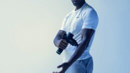 Dispositivo de masaje por vibración de tecnología inalámbrica que ayuda a relajar los músculos doloridos y rígidos para mejorar la movilidad mediante su terapia de percusión.