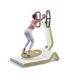 ¿El objetivo? Mantener la posición indicada utilizando los objetivos que aparecen en la pantalla y compensando los desequilibrios de la plataforma oscilante. Trabajar de pie, como en la vida diaria, reequilibra todo el cuerpo con total seguridad.