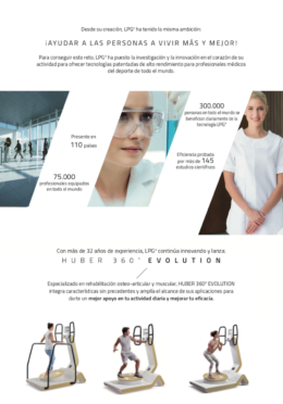 Las capacidades tecnológicas del HUBER 360® EVOLUTION permiten tratar más del 90 % de las patologías convencionales. Su uso tiene ventajas considerables para el tratamiento de patologías de tobillo, rodilla, cadera, hombro, espalda y neurológicas.