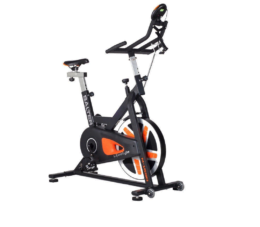 Entrena como un profesional y realiza tus sesiones de ciclismo cómodamente en tu casa. No dependas de las inclemencias del tiempo y disfruta de un entreno al máximo nivel con total comodidad. El modelo LIFESTYLE ofrece grandes prestaciones que te harán disfrutar del entreno y lograr el máximo rendimiento a tus sesiones. Una correcta posición de trabajo es fundamental para realizar un entreno efectivo, por este motivo, la bicicleta cuenta con múltiples regulaciones que permiten conseguir la posición óptima. El asiento es ergonómico y se regula tanto horizontal como verticalmente para lograr la posición óptima de trabajo según las necesidades de cada usuario. El manillar se regula verticalmente y permite distintas posiciones de agarre aumentando las posibilidades de trabajo. Los calapies incorporan puntera larga con cinta regulable que permiten una sujeción segura. El sistema de freno magnético ofrece una alta calidad al ejercicio y permite un trabajo suave y totalmente silencioso. Además, este sistema no precisa mantenimiento ya que no existe fricción y, por lo tanto, no se produce ningún tipo de desgaste. Este modelo va provisto de un volante de inercia equivalente a 20 kg que genera un movimiento suave y fluido. La transmisión por correa de caucho PK5 garantiza un movimiento continuo y totalmente silencioso. El nivel de resistencia es regulable lo que permite ajustar la intensidad del ejercicio en función del tipo de entreno que se quiera realizar. – A diferencia de otros modelos, la bicicleta LIFESTYLE dispone de un Paro de Emergencia que permite frenar la inercia del volante en caso de necesidad urgente. El monitor, fácil y cómodo de usar, proporciona información constante de los indicadores básicos del ejercicio: Tiempo, Velocidad, Distancia, RPM, Calorías y ODO que muestra la distancia total acumulada total. – Dada la importancia de mantener una buena hidratación durante el ejercicio, la bicicleta va provista de un porta-botellas en el manillar. Los topes niveladores en la base permiten ajustar la máquina a las irregularidades del suelo ofreciendo una total estabilidad. Las ruedas que incorpora en la base facilitan el desplazamiento de la máquina.