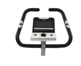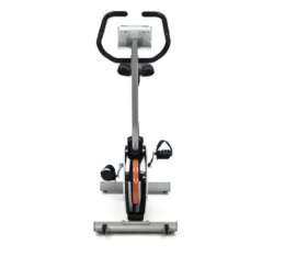 Ponte en forma sin salir de casa practicando uno de los ejercicios más completos. Esta bicicleta por su pequeño tamaño es ideal para espacios reducidos.Ofrece, además, grandes prestaciones que permiten un trabajo efectivo y cómodo. – Cuenta con múltiples ajustes que permiten ajustar la posición de trabajo a las necesidades de cada usuario. – El asiento, amplio y confortable, se regula tanto horizontal como verticalmente para lograr la posición óptima de trabajo según las necesidades de cada usuario. – El manillar ergonómico permite varias posiciones de agarre aumentando las posibilidades de trabajo. – El sistema de freno magnético ofrece una alta calidad al ejercicio y permite un trabajo suave y totalmente silencioso. Además, este sistema no precisa mantenimiento ya que no existe fricción y, por lo tanto, no se produce ningún tipo de desgaste. – Este modelo va provisto de un volante de inercia equivalente a 10 kg que genera un movimiento suave y fluido. – La medición del pulso se realiza por sensores de contacto incorporados en el manillar que permiten una lectura cómoda e inmediata de las pulsaciones durante el ejercicio. – El monitor cuenta con sistema de captación inalámbrico (radiofrecuencia a 5kHz)que permitecontrolar cómodamente las pulsaciones en ejercicios dealta intensidad. El cinturón emisor de pulsaciones es opcional y no está incluido. – Incluye un monitor con pantalla LCD que proporciona información constante de los indicadores básicos del ejercicio: Tiempo, Velocidad, Distancia, Calorías y Pulso. – El monitor es muy fácil de usar y permite múltiples opciones de trabajo. El usuario puede trabajar en modo Manual o acceder a alguno de los 6 Programas Predeterminados eligiendo el perfil de entreno y la intensidad de trabajo que quiera realizar (16 niveles de intensidad). Existe además la opción Programa Usuario que permite al usuario diseñar su propio programa de entreno. Otras opciones del monitor son los 4 programas HRC (programas control pulso cardiaco) que permiten controlar, de forma automática, la intensidad del ejercicio y mantener el esfuerzo dentro de los límites seleccionados y el programa BODY-FAT que muestra el índice de masa corporal. – El monitor, además, dispone de un soporte para tablet o dispositivo móvil. – Los topes niveladores en la base permiten ajustar la máquina a las irregularidades del suelo ofreciendo una total estabilidad. – Las ruedas que incorpora en la base facilitan el desplazamiento de la máquina. – Dimensiones: 109 x 52 x 135 cm – Peso: 30 kg – Peso máximo del usuario: 120 kg
