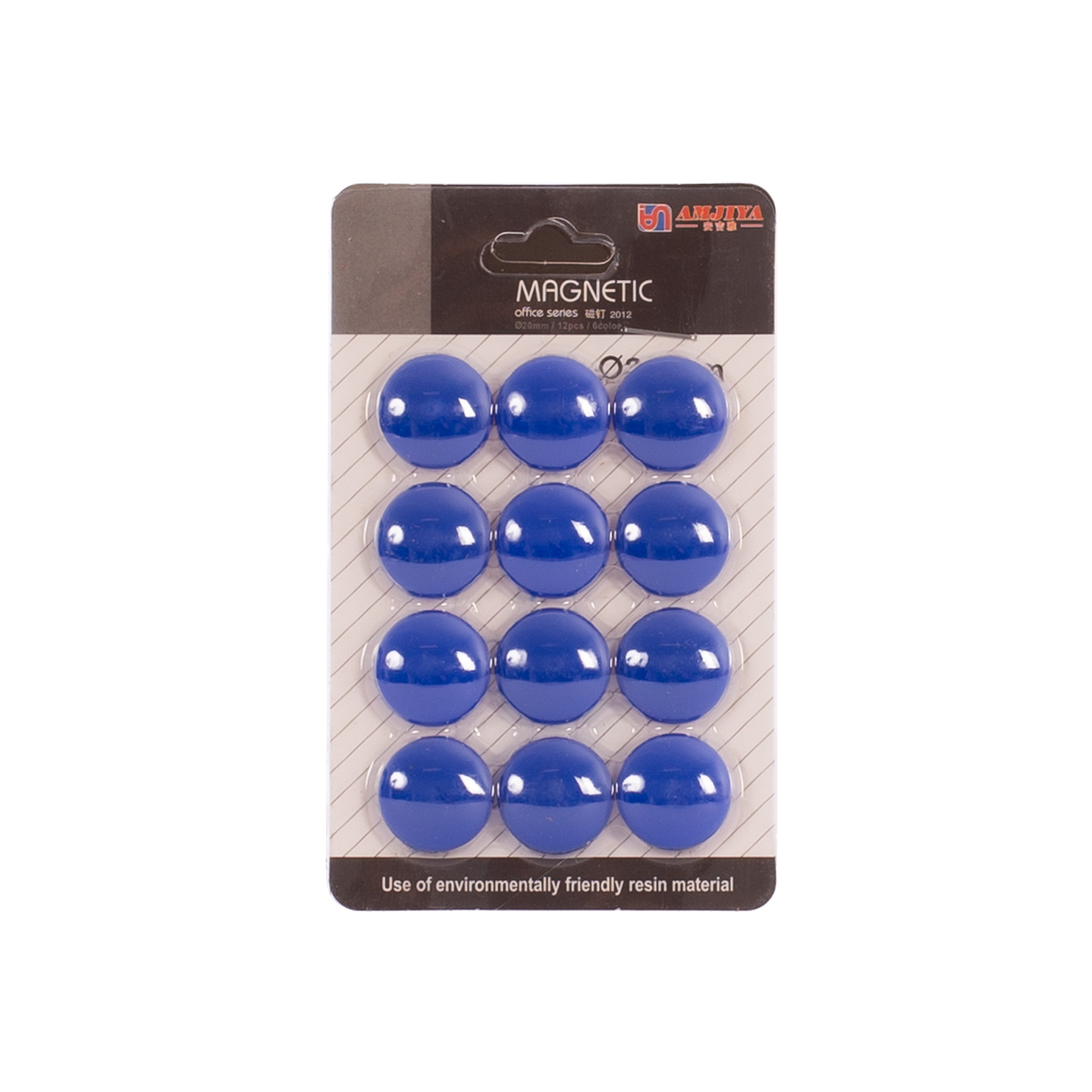 El set contiene 12 imanes para colocar en pizarras o carpetas tácticas. Cada set es monocolor. Diámetro: 2cm. Ancho: 0,7cm.