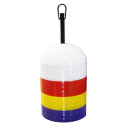 Set 40 conos chinos rígidos delimitador de entrenamientos y circuitos. Indicado para marcar zonas de ejercicios. 10 unidades por color. Diámetro: 20cm. Altura:7cm. Medidas: 19×39,5cm.