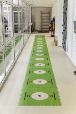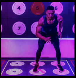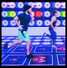 Es un piso interactivo , luminoso y sólido con sensores de presión , que le permite entrenar individualmente o en grupos pequeños.