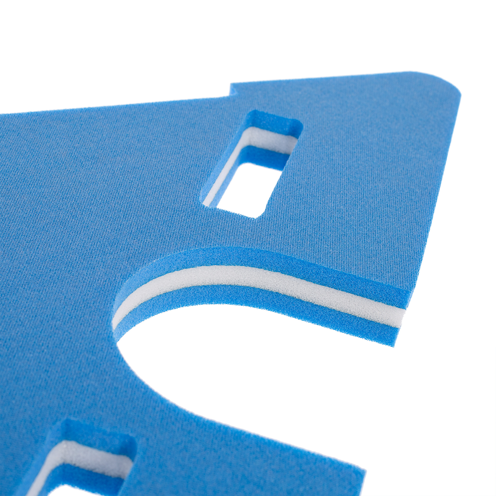 Tabla natación con agarres fabricada en espuma de célula cerrada con fi lm de plástico a dos caras para dar mayor resistencia. Forma anatómica.