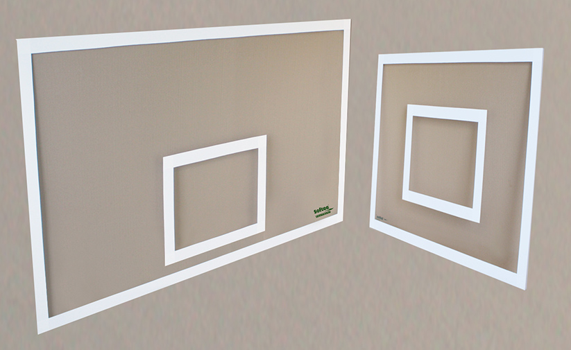 Estas referencias no están concebidas para aguantar el peso del aro, es decir, dichos tableros colocados en canasta deben de estar sujetos a un soporte metálico perimetral y evitar así posibles rupturas en los laterales o las esquinas. Este soporte debe a su vez incorporar una pletina a la cual se atornillará el aro.