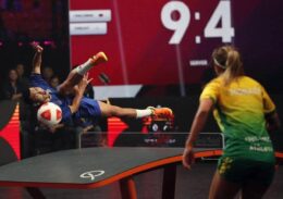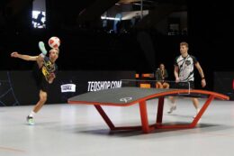 Detalles: Longitud: 3 m. Altura: 0.9 m (con red de plexiglás), 0.76 m (sin red de plexiglás). Anchura: 1.5 m (sin red de plexiglás). Ancho de la red de plexiglás: 1.7 m. Peso: 147 kg. Color de la estructura de las patas: naranja. Color del tablero de la mesa: gris oscuro. Color de la red: transparente