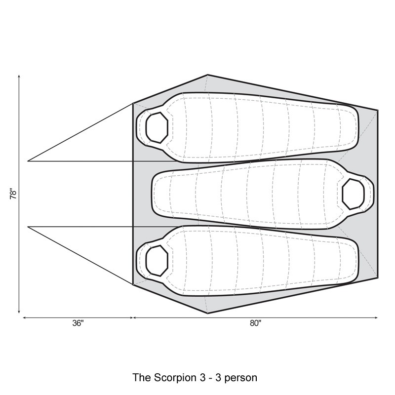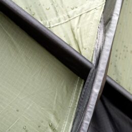 Lo mismo que la BUNKER, la SCORPION 2 y la IONOSPHERE, la SCORPION 3 incorpora una cubierta laminada de poliuretano capaz de soportar 5000 mm de columna de agua. Esta última característica, unida a su diseño de perfil bajo (soporta mejor los vientos fuertes) te mantendrán seco a ti y a tu equipo incluso en las peores condiciones climatológicas.