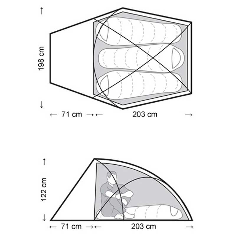 - Peso total incluyendo tienda, piquetas, varillas, vientos y saco de transporte: 3,4 Kg.