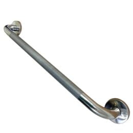 Asidero antideslizante de acero inoxidable cromado indicado para fijar en la pared con los tornillos que no se incluyen.