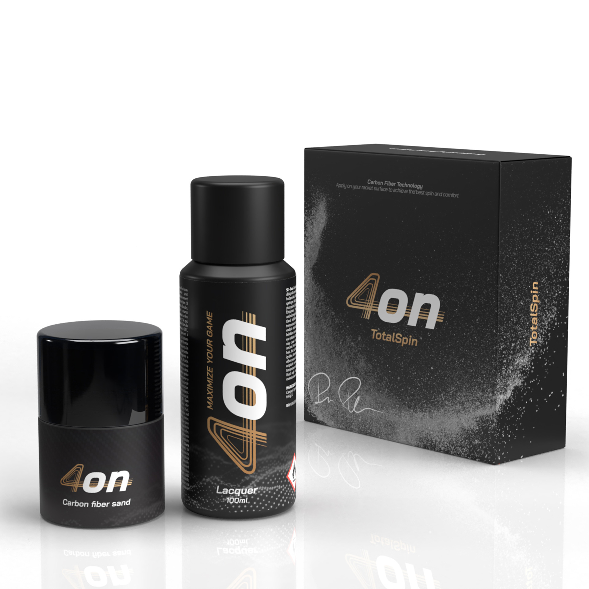 TotalSpin 4ON eta compuesto por una laca de 100 ml y una arena de fibra de carbono. Con este pack podrás conseguir una superficie rugosa estilo lija a tu pala. Gracias a una superficie rugosa se logran golpes con efectos.
