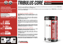 Core Series de Procell presenta Tribulus Core en un envase con 90 cápsulas de 700 mg de extracto seco de semillas de Tribulus Terrestis y 300 mg del aminoácido L-arginina por cápsula. Obteniendo así 2100mg de Tribulus y 900mg de L-arginina por toma.