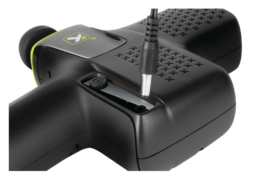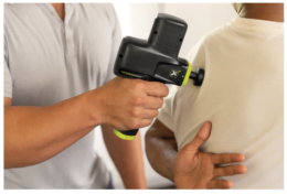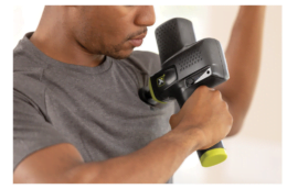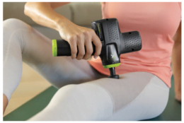 La pistola de masaje de percusión controlable de 4 velocidades de TriggerPoint que ayuda a aumentar el flujo sanguíneo, hidratar el tejido muscular y mejorar el rendimiento del cuerpo tanto antes como después del entrenamiento.