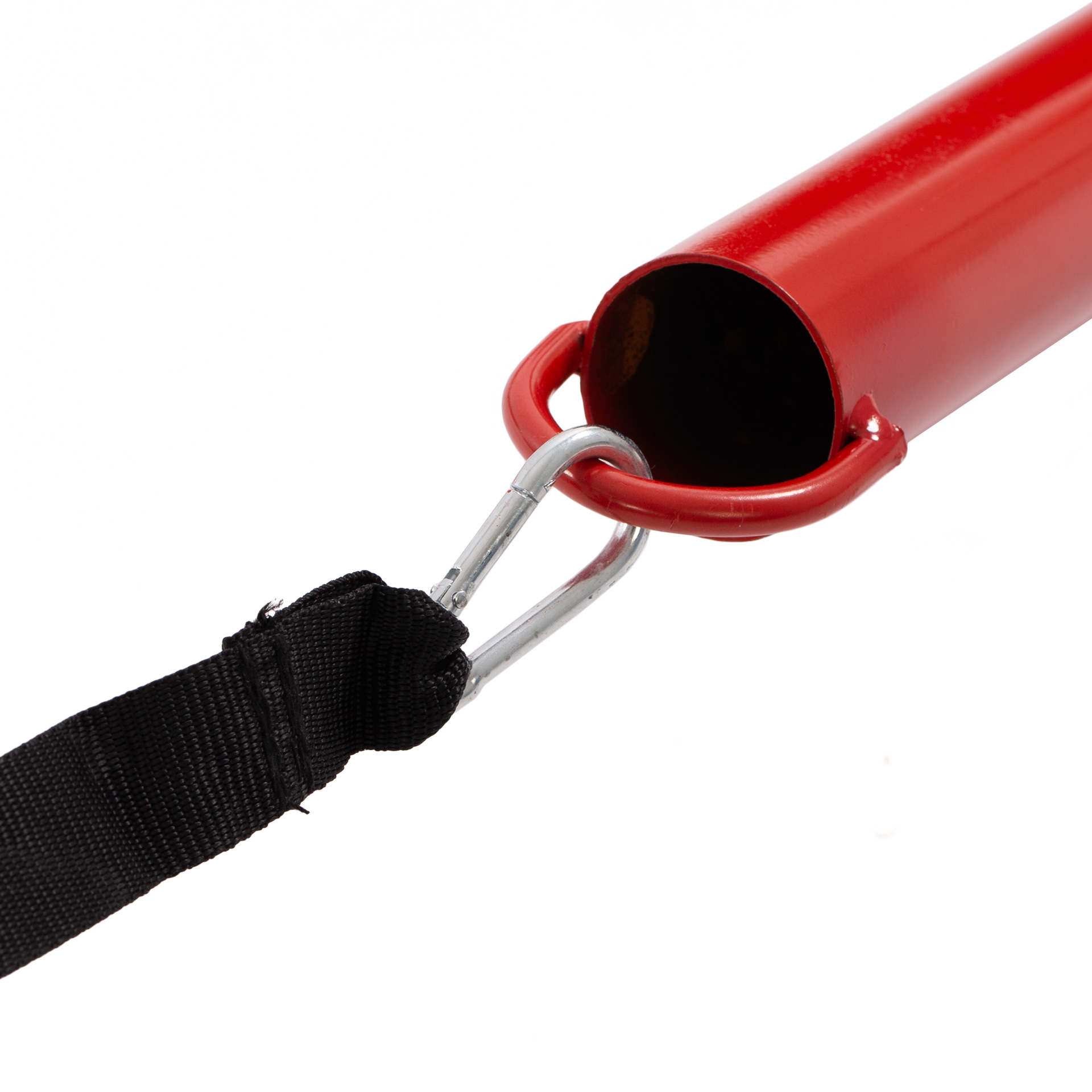 Largo de la cinta del arnés: 295cm. Mosquetones de 6cm de largo.