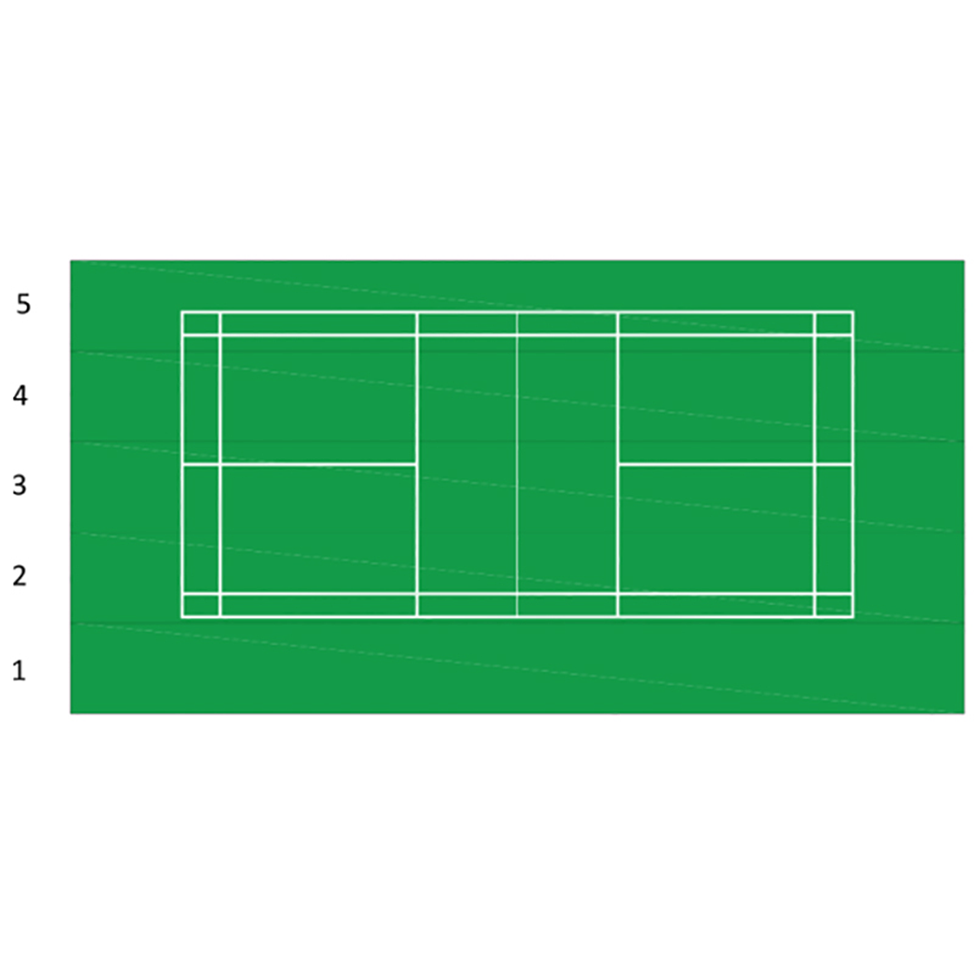 Superficie de 4,5 mm de espesor, en color verde. Marcajes oficiales de 13,40×6,10 mts