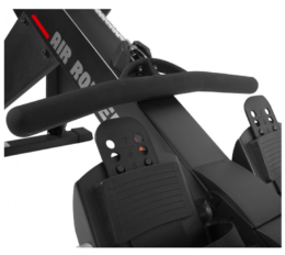 El H5 Air Rower Unlimited cuenta con un mecanismo de pestillo de liberación rápida, no se requieren herramientas. Se puede separar fácilmente la máquina en dos piezas para su almacenamiento. Tiene ruedas en el estabilizador delantero que permiten su transporte y girar la máquina completamente sobre su posición. Los reposapiés ajustables permiten una adaptación rápida y fácil a cada usuario. El mango es cómodo y ergonómico y tiene una curva de 10 grados que permite remar con una posición natural del brazo y la mano.