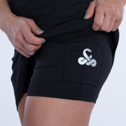 Incluye pantalón corto, tipo malla ajustada, en el mismo color del vestido. Además incluye bolsillo para pelota de pádel.