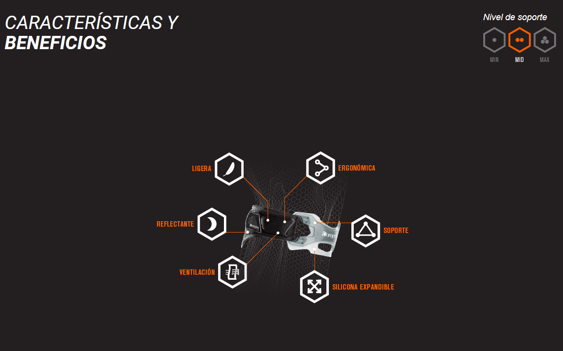 - Nuestra Cincha Rotuliana Compex WebTech cuenta con un innovador sistema que proporciona comodidad y alivio de la presión sobre el tendón rotuliano