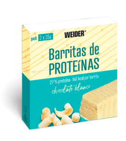 Barritas 35 g x 3 Sabores: Proteicas: Chocolate blanco, Coco y Avellana.