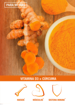 Extracto de raíz de curcuma (Curcuma longa) (emulsificante: E433; curcuminoides. vitamina D3 (colecalciferol)), hidroxipropilmetilcelulosa (cápsula), antioxidante: ácido ascórbico.