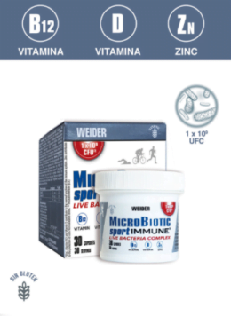 Microbiotic Sport es un complejo de bacterias vivas especialmente formulado para restablecer la flora intestinal y apoyar el sistema inmunológico de los deportistas y las personas activas.