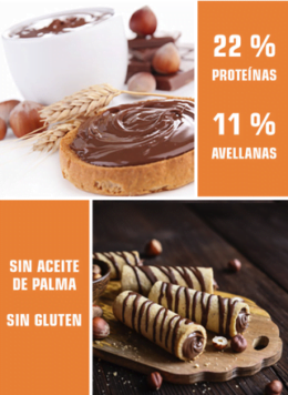 Edulcorante: maltitol; 22% concentrado de proteína de suero de leche¹, Aceite de girasol, 11% avellanas, suero de leche dulce en polvo¹, 6,5% cacao en polvo bajo en grasa, manteca de cacao, aceite de coco, emulgente: lecitina; aroma natural. ¹Contiene leche y lactosa. Puede contener trazas de almendras.