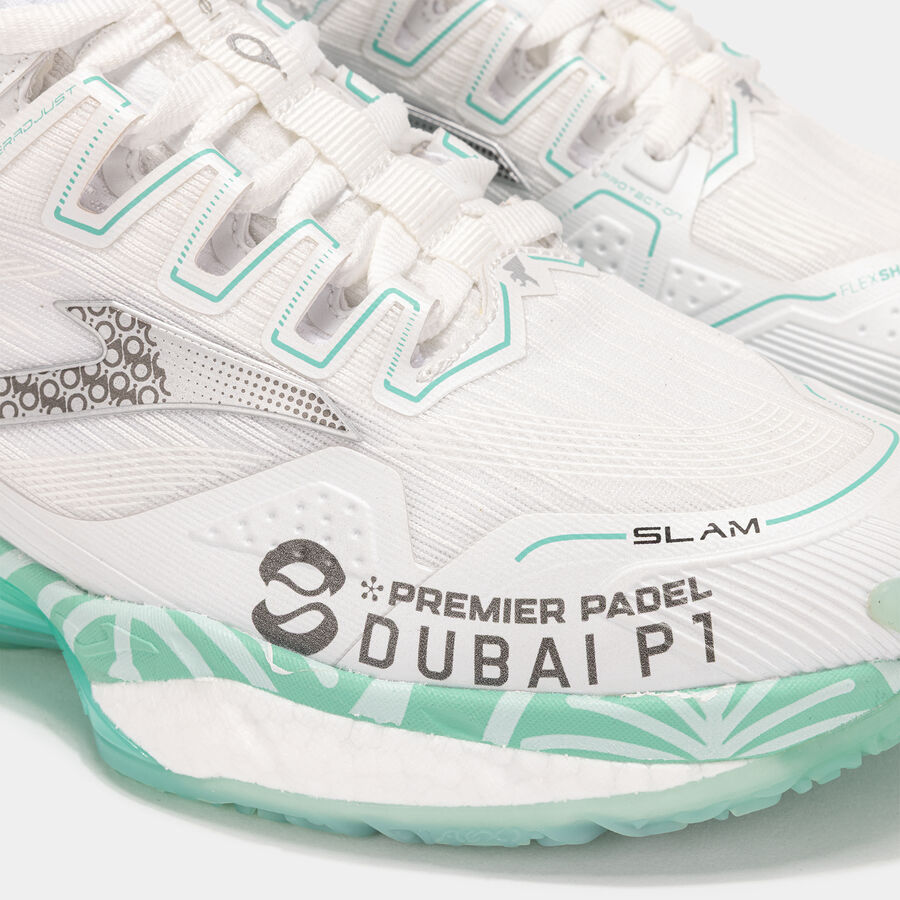 Zapatillas de pádel oficiales de la Premier Padel Dubai P1 2025, diseñadas especialmente para rendir al máximo en las pistas donde compiten las grandes estrellas del circuito. Un modelo de alta gama que combina tecnología de vanguardia, estabilidad y una amortiguación equilibrada, pensado para jugadores exigentes y técnicamente avanzados. Estas zapatillas han sido testadas por jugadoras de élite como Vero Virseda.
